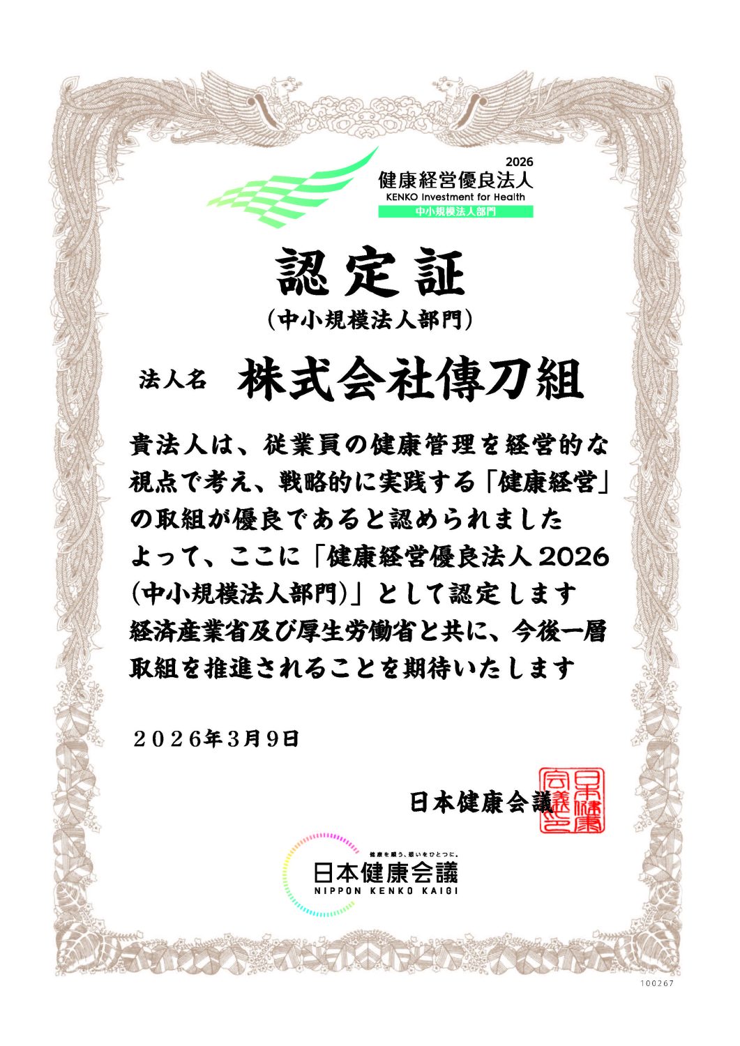 弊社は従業員の健康の維持増進を経営の重要な柱のひとつとして実践に努めていますが、その取り組みが評価され、平成30年より毎年「健康経営優良法人」に認定されています。